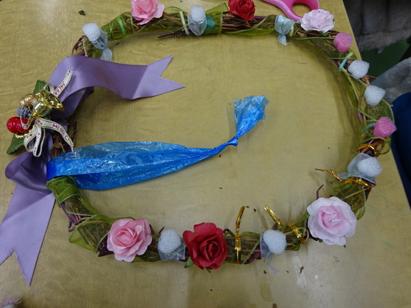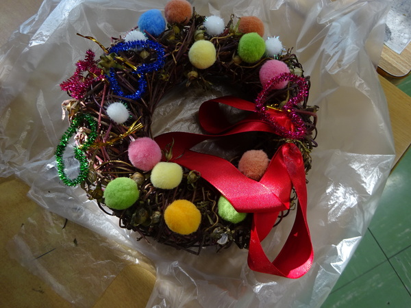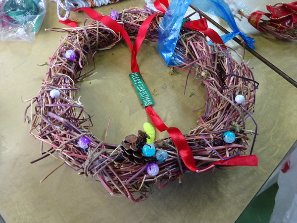 授業後には、思いのつまったクリスマスリースがたくさん並びました。